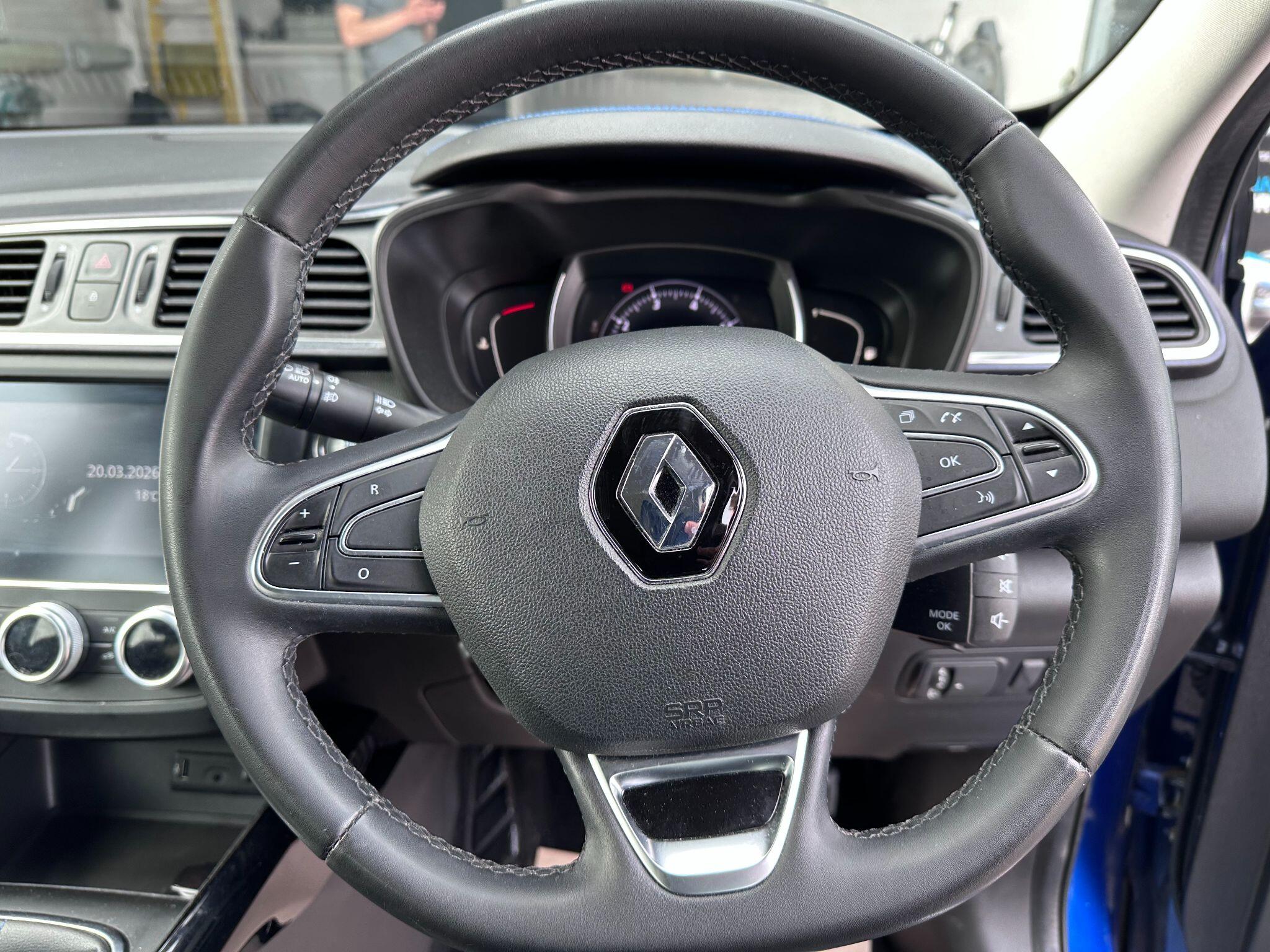 19in Alloy Wheels - Zeus, 3 Height Adjustable Rear Head Restraints, 3 Point Inertia Reel Seatbelts, 3-Seat Rear Bench, 4x35W Speakers with 3D Sound, 60-40 Split Folding Seats, ABS with EBA - Emergency Brake Assist, Accessory Power Point, Adjustable Dashboard Illumination, Air Recirculation, Airbags - Curtain Front and Rear, Airbags - Deactivation of Front Passenger - For Use with Child Seats, Airbags - Driver and Passenger Adaptive Front, Airbags - Front Lateral, Apple CarPlay and Android Auto, Auto Dimming Rear View Mirror, Automatic Dual Zone Climate Control, Automatic Headlights and Front Wipers, Back-Illuminated Central Console, Body Sided Moulding with Chrome Insert, Central Rear Armrest with Cup Holders, Chrome Window Surrounds, Courtesy Lights - Rear, Cruise Control with Speed Limiter, Daytime Running Lights - LED, Deadlocking and Immobiliser, Display - Digital Speedometer, Door Handles - Body Coloured - Front, Door Mirrors - Body Coloured, Door Mirrors - Heated and Electrically Adjustable - Automatically Folding, Door-Boot Open Warning Light, Driver Seat Belt Height Adjustable, Driver and Passenger Seat Belt Undone Warning Audible Alert, ESP - Electronic Stability Programme with ASR - Anti-Skid Regulation and UCL - Understeer Logic Control, Easylife Quick Folding Rear Seats, Eco Mode, Electric Front Windows, Electric Rear Windows, Electronic Parking Brake, Exterior Temperature Indicator, Extra Tinted Windows - Rear and Tailgate, Fingertip Audio System Remote Control, Fixed Glass Panoramic Sunroof, Floor Mats - Front and Rear, Fog Lights - Chrome Surrounds, Full LED Headlamps, Gear Change Indicator, HSA - Hill Start Assist, Headlights - Automatic High-Low Beam, Headrests - Front Fully Adjustable, Heated Rear Windscreen, Height Adjustable Front Seat Belts, ISOFIX Child Seat Anchorage on Rear Outer Seats, Insurance Approved - Category 1 Alarm System and Immobiliser, Integrated C-Shape Indicators with Side Repeaters, Interior Courtesy Light Controlled By All 4 Doors, Keycard - Hands Free with Walk Away Lock Function, LDW - Lane Departure Warning, LED Front Fog Lights with Cornering Lights, LED Tail Lights, Low Fuel Level Warning Light, Luggage Compartment - Illumination, Multi Position Boot Floor, Oil Level Gauge, Parking Sensors - Front and Rear, Pollen Filter, Power Steering, Protective Rear Brake Disc, R-Link 2 Multimedia System - 7in Touchscreen, RAID - Renault Anti Intruder Device - Auto Closure - 6mph, Reading Lights - Driver and Front Passenger, Rear Air Vents, Rear Parking Camera, Rear Seat Belt Undone Audible Alert, Rev-Counter, Roof Rails, Satin Grey Front and Rear Skid Plates, Seats - Drivers Height and Lumbar Adjustment, Seats - Height Adjustable Front Seatbelts with Double Pretensioners, Seats - Passenger Height Adjustment, Side Impact Protection Bars, Sliding Front Centre Armrest, Steering Wheel - Faux Leather, Steering Wheel - Rake and Reach Adjustable, Sun Visor - Mirror With Light, Trip Computer - Multifunctional, Two Rear USB Plugs, Tyre Inflation Kit, Tyre Pressure Monitoring System, Cloth - Black with Blue Top Stitching